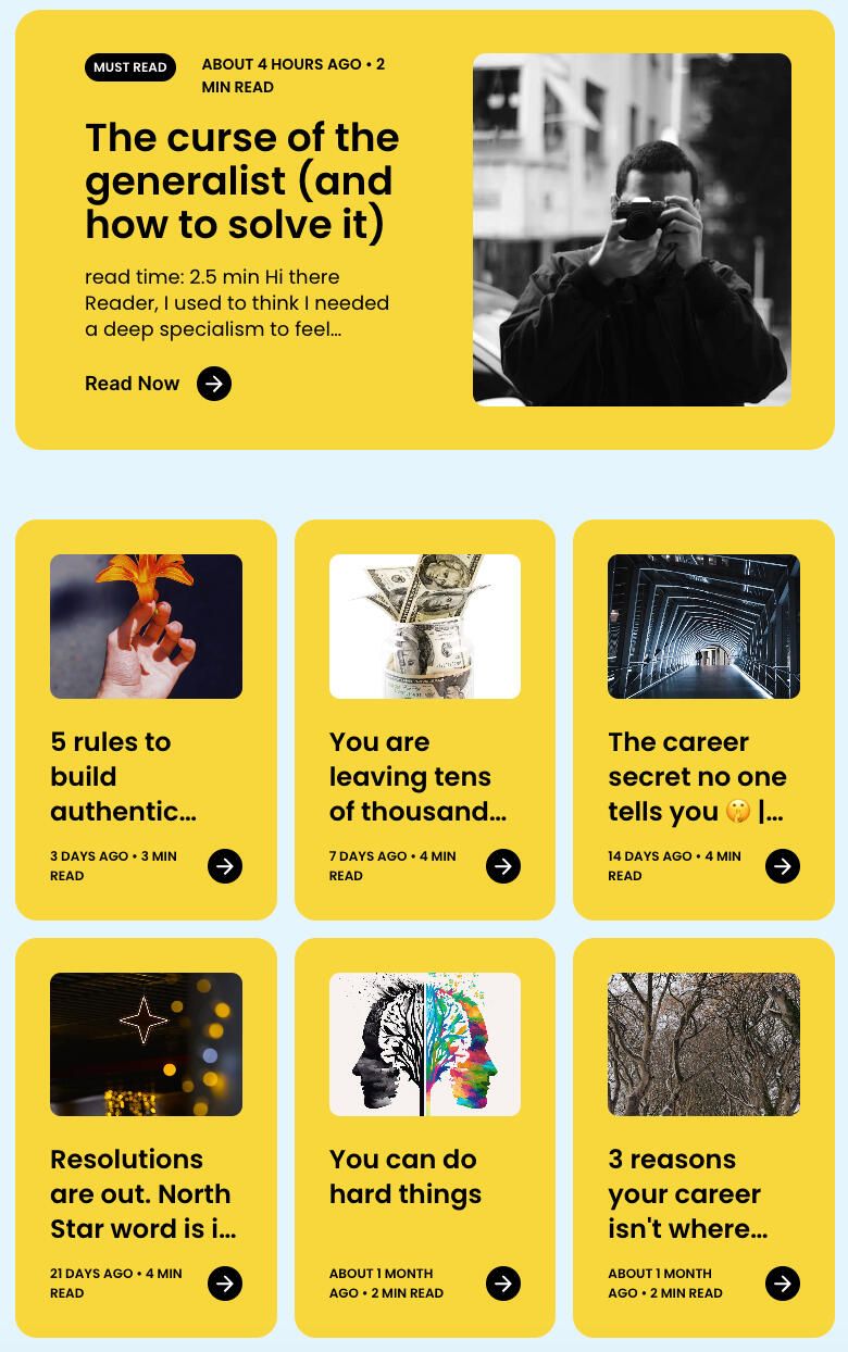 A weekly confidence boost for corporates and consultants who think and feel deeply and have a big change to make in their career and life.This inbox drop is designed to help you start thinking differently about change. what you are capable of and the opportunity ahead of you.